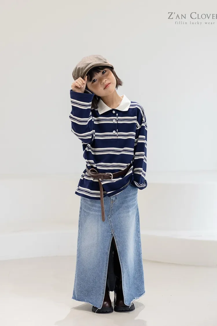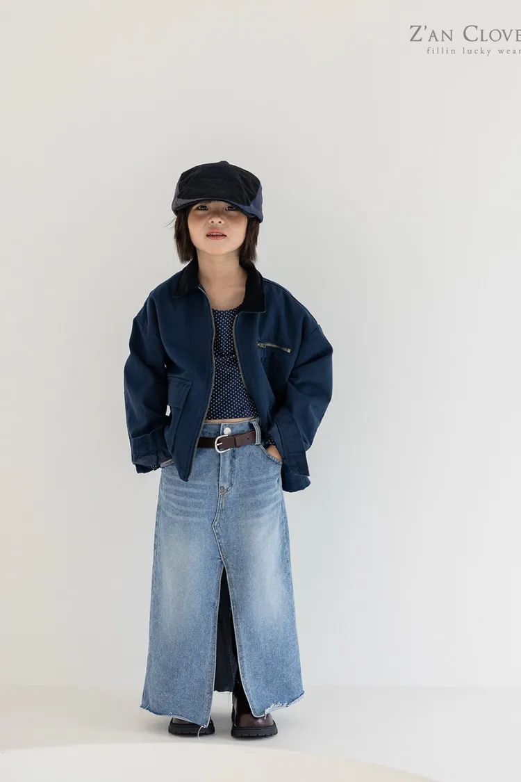 25FW09-時髦歐膩開衩牛仔長裙