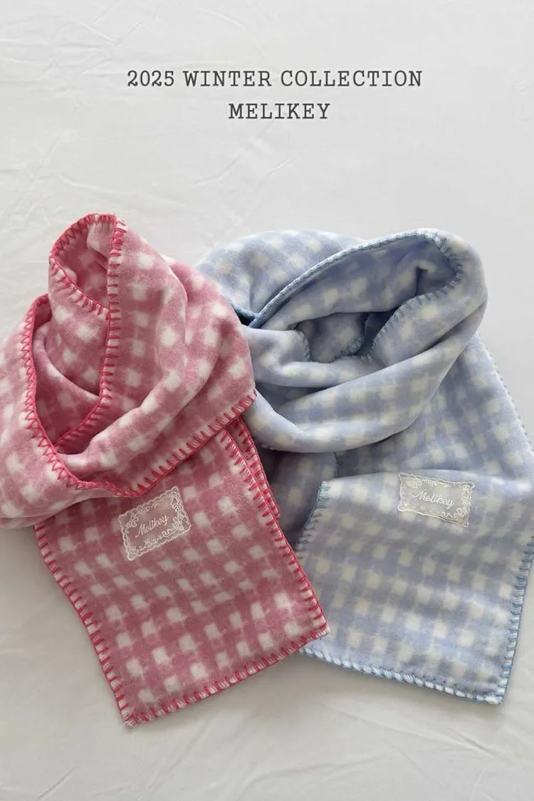 25FW11-暖呼棉柔格紋繡邊圍巾