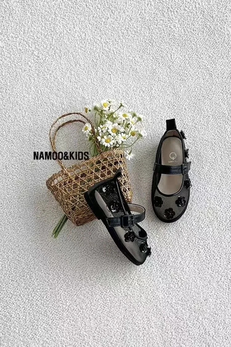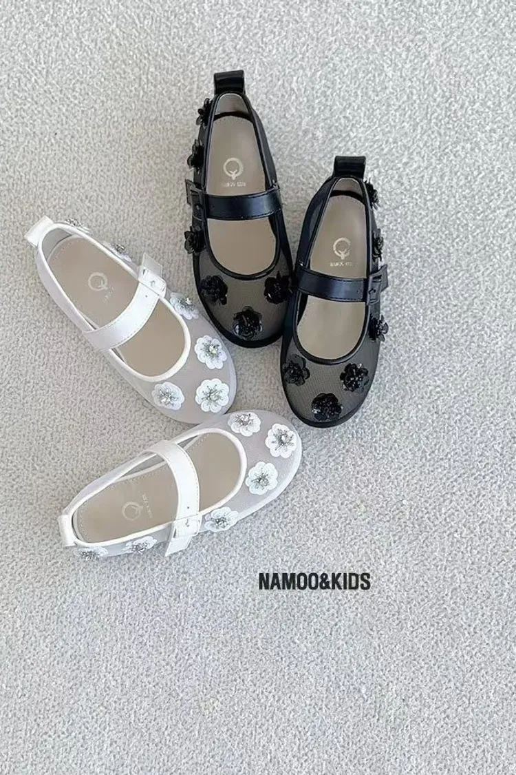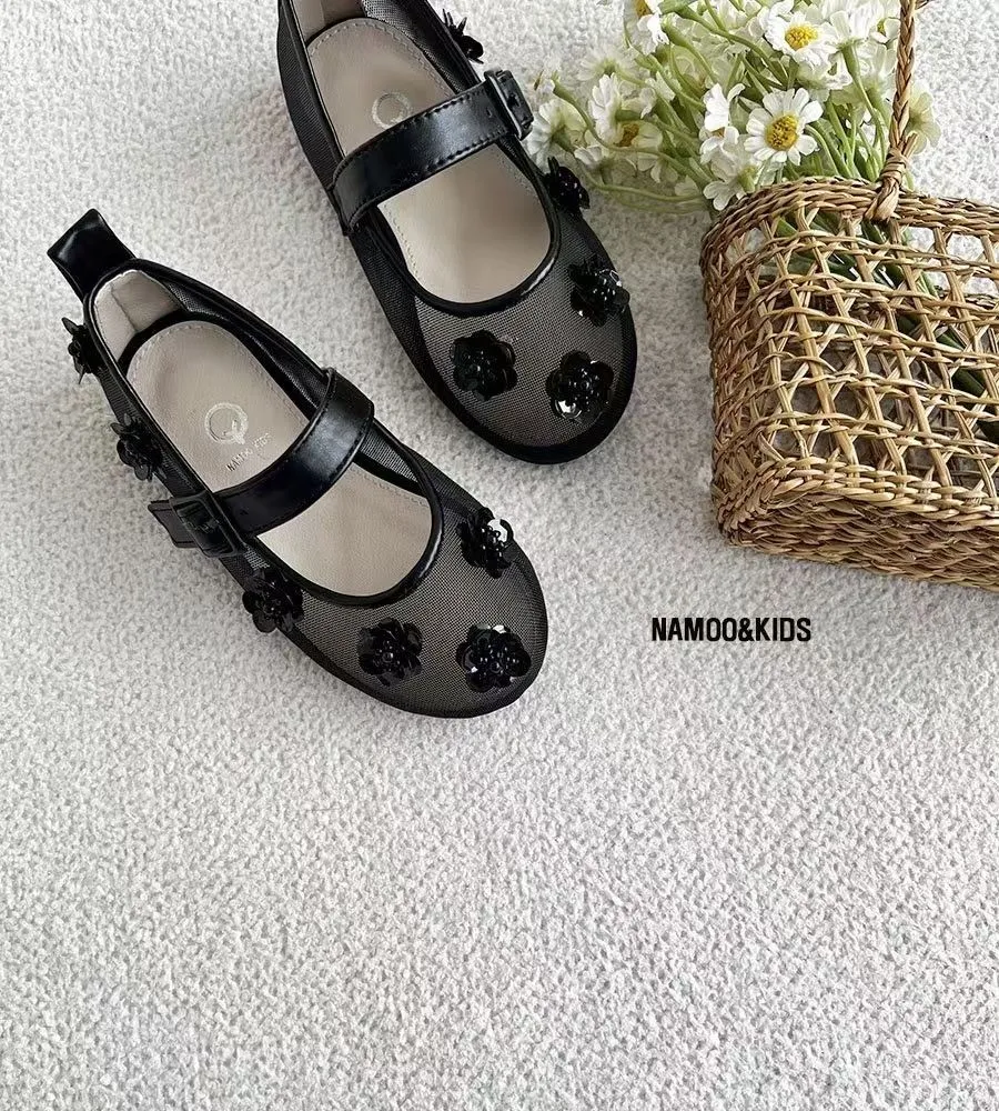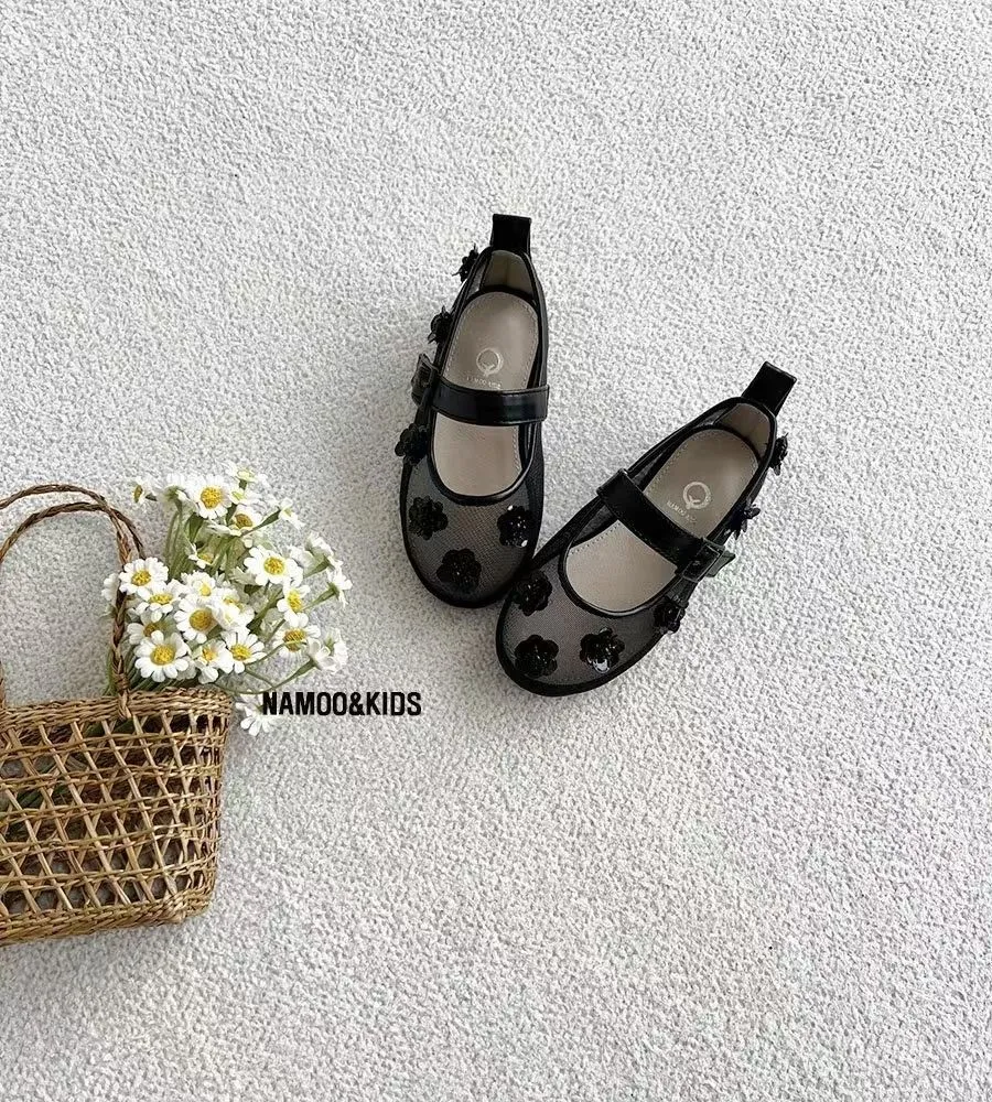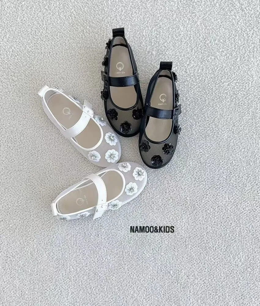 26SS03-水鑽花朵網紗娃娃鞋