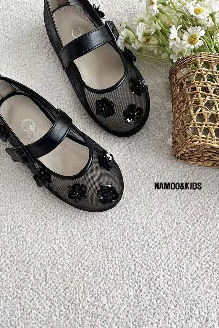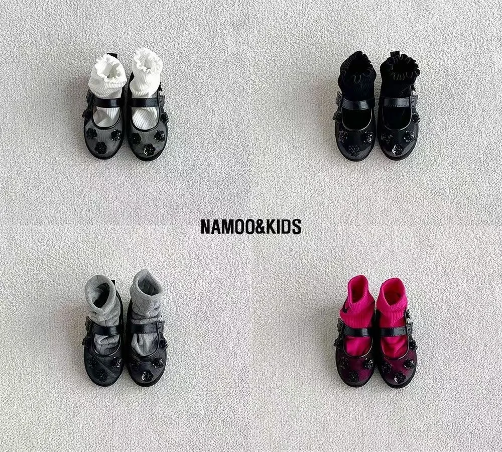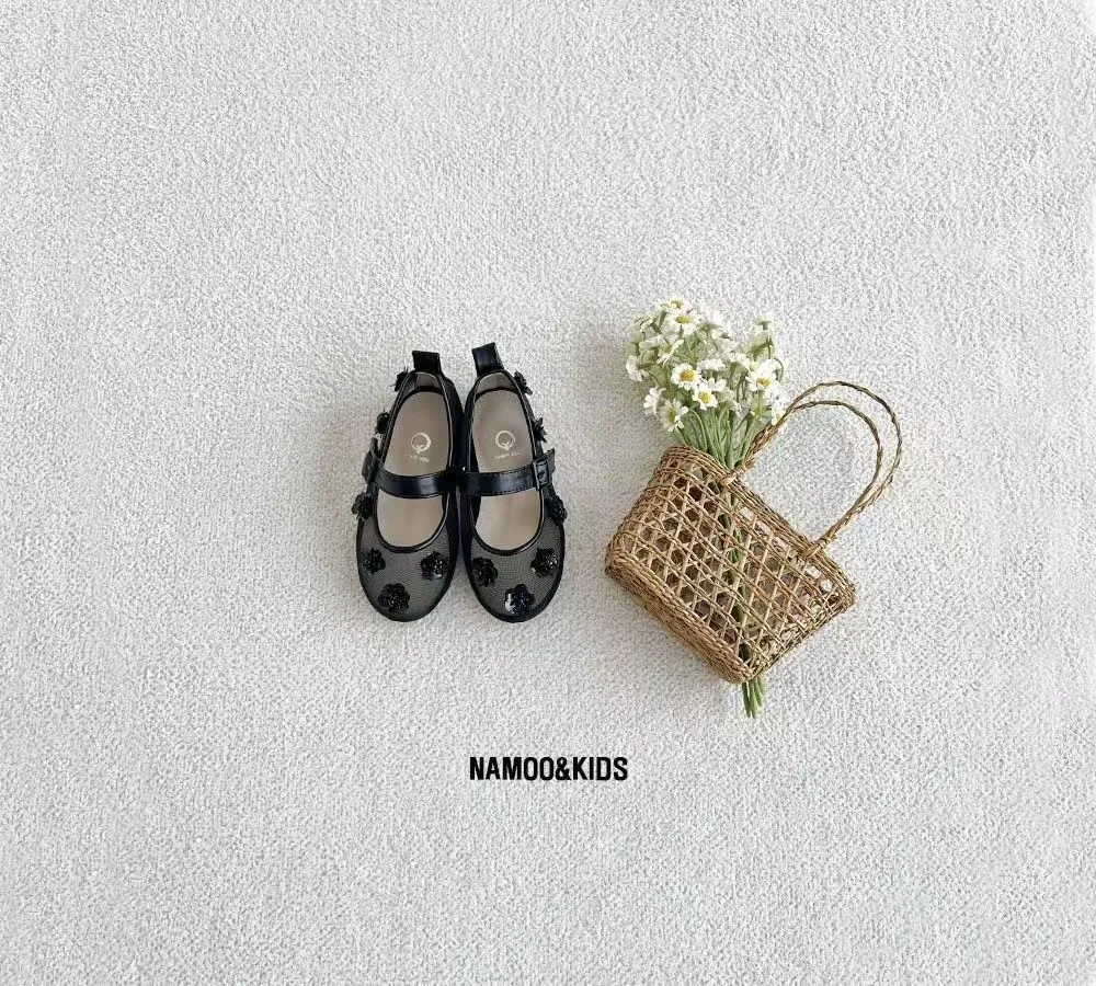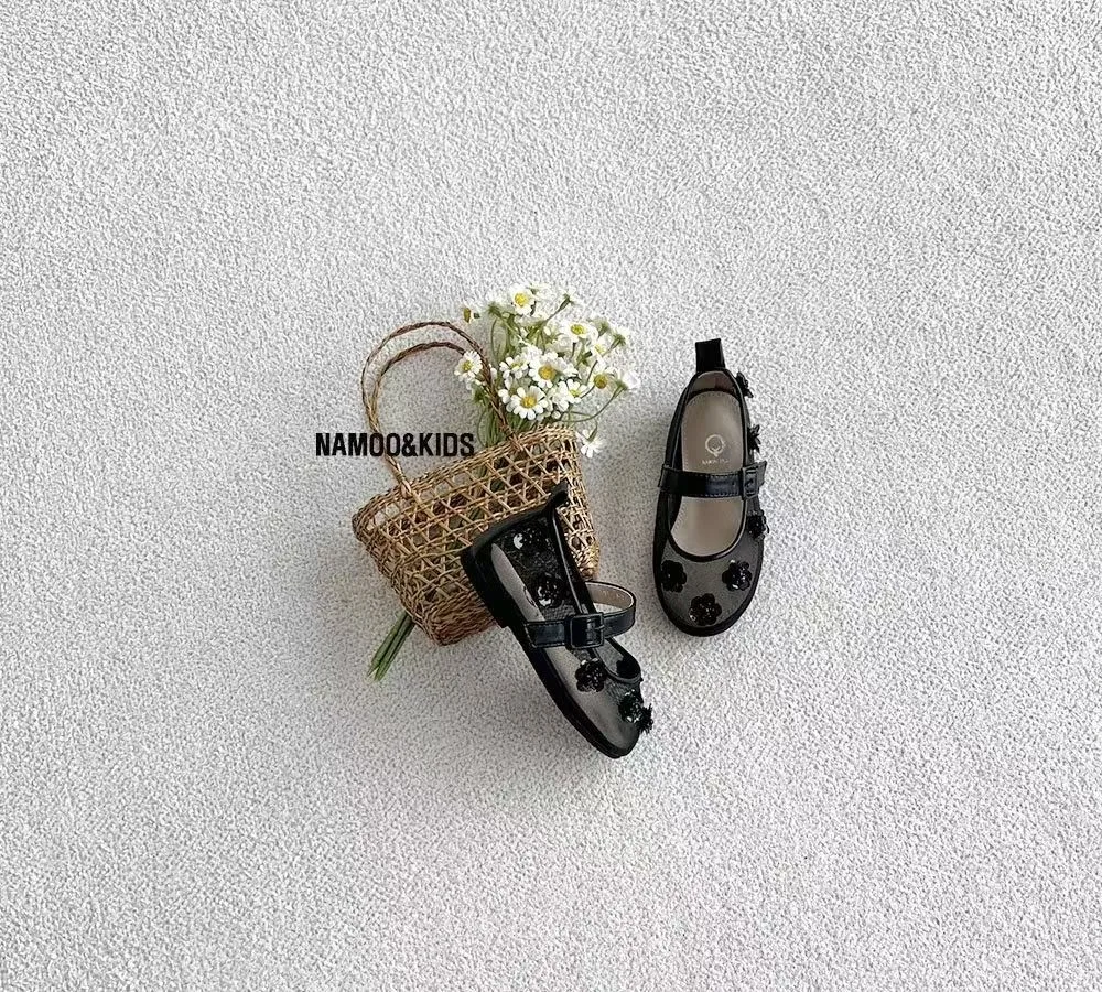 26SS03-水鑽花朵網紗娃娃鞋