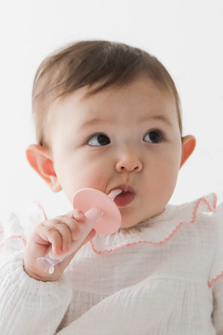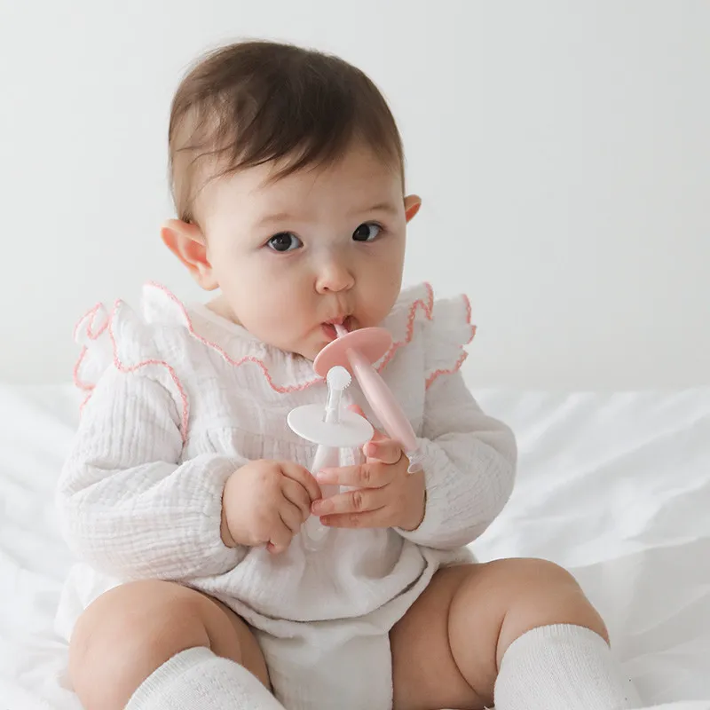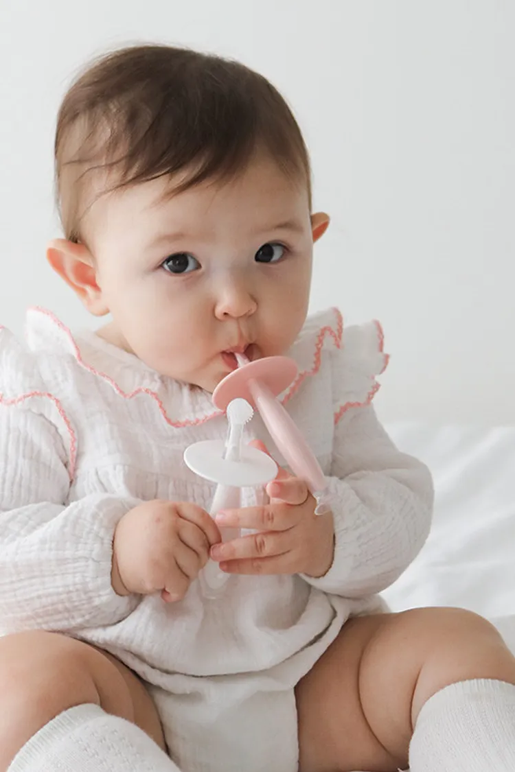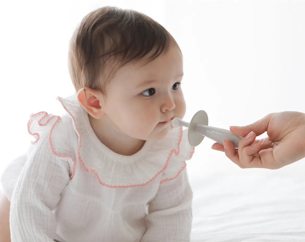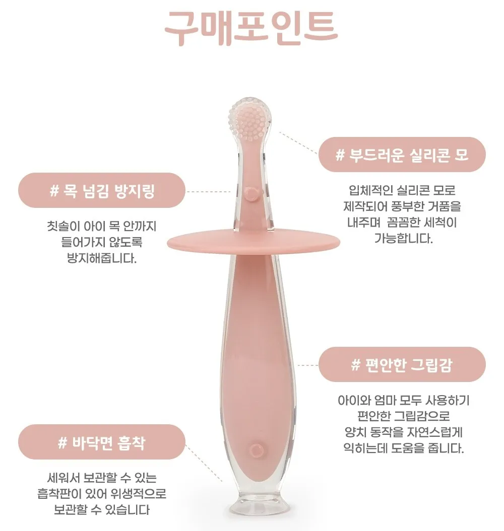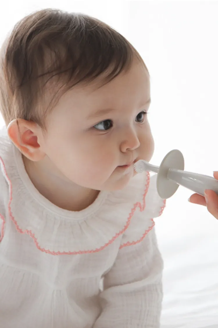 *柔軟矽膠刷頭保護乳牙、牙齦